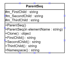 Generated Code This is a UML representation of the generated code, note that there are 3 string properties (FirstChild, SecondChild & ThirdChild) corresponding with the child elements within ParentSeq.